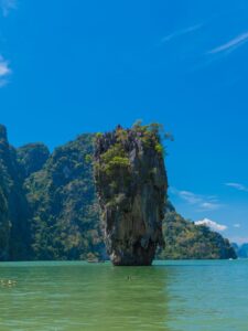 the mysterious crescent moon-shaped clear white sand beach hidden in the huge limestone mountain, full of baby sharks. Its beauty is in the world’s rank and it is chosen to be the location for shooting the movie titled “The Beach” because of its beauty.