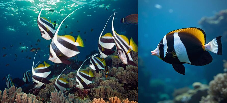 แนวปะการังเป็นบ้านของปลาสีสันสดใสนานาชนิด เช่น ปลาผีเสื้อ (Butterflyfish) และปลานางฟ้า (Angelfish) ซึ่งถือเป็นดัชนีชี้วัดความสมบูรณ์ของระบบนิเวศ