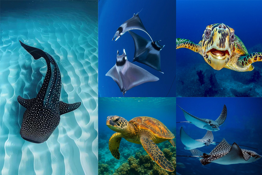 การได้พบกับสัตว์ทะเลขนาดใหญ่ เช่น เต่าทะเล กระเบนราหู หรือฉลามวาฬ คือประสบการณ์ที่นักดำน้ำใฝ่ฝัน อย่างไรก็ตาม การท่องเที่ยวใต้น้ำควรเป็นไปอย่างรับผิดชอบ เพื่อไม่รบกวนสัตว์ในธรรมชาติ