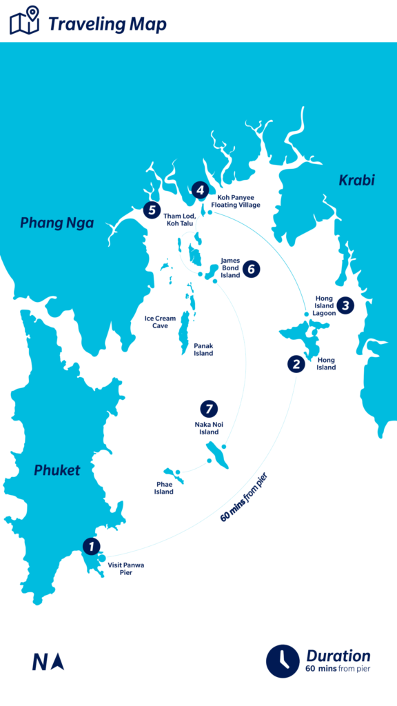 ค้นพบไฮไลท์ของอ่าวพังงาไปกับการผจญภัยเต็มวัน ที่ผสมผสานทัศนียภาพอันเป็นเอกลักษณ์ วัฒนธรรมท้องถิ่น และการสำรวจธรรมชาติอย่างลงตัว การเดินทางครั้งนี้จะพาคุณสัมผัสหน้าผาหินปูนสูงตระหง่าน ลากูนลับกลางทะเล พายเรือแคนูผ่านถ้ำทะเล เยี่ยมชมหมู่บ้านลอยน้ำ และพักผ่อนบนเกาะที่สวยงาม ตั้งแต่เกาะเจมส์บอนด์อันโด่งดังไปจนถึงป่าชายเลนอันเงียบสงบและจุดชมวิวแบบพาโนรามา ทริปนี้มอบความสมดุลที่ลงตัวระหว่างการเที่ยวชม การผจญภัยเบา ๆ และการพักผ่อน พร้อมการดูแลโดยทีมงานท้องถิ่นผู้เชี่ยวชาญ เพื่อความปลอดภัยและความประทับใจตลอดวันในทะเล